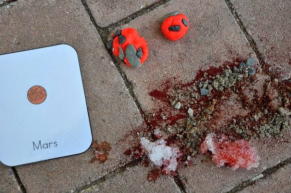Obrovskou inspirací mi byly články o sluneční soustavě z MontessoriDoma, podle kterých jsem se s B. pustila do (výborně zpracovaných!) aktivit na přiblížení základních vlastností planet. Na jejich základě si každou planetu B. postupně pomalovala, ale jen v dvojrozměrné verzi, do prostorových modelů jsem se nepouštěla.